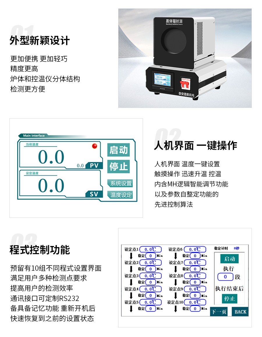 5)大面源等溫黑體輻射面,發(fā)射率可調(diào)功能(0.95-1 之間可調(diào),出廠默認(rèn)發(fā)射率 0.95)。