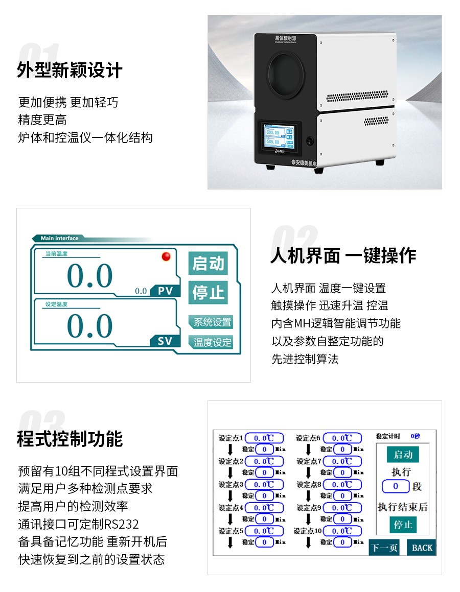 5)大面源等溫黑體輻射面,發(fā)射率出廠默認(rèn)0.95,如需要不同發(fā)射率可在0.96-0.99之間發(fā)射率可調(diào)。