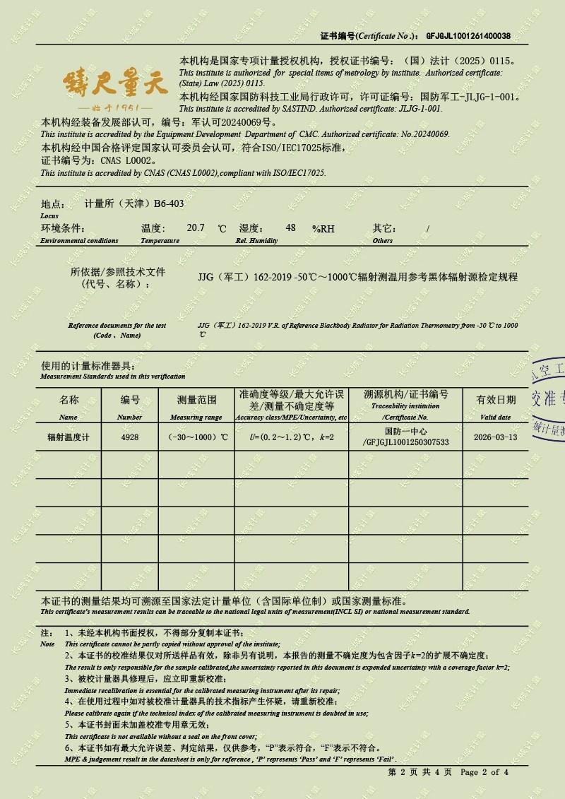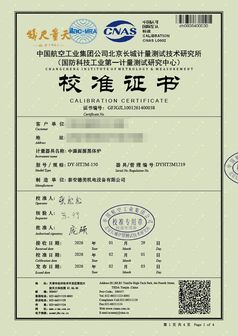 中溫面源黑體爐-校準(zhǔn)證書 2026-2-11 本文被閱讀 760 次
