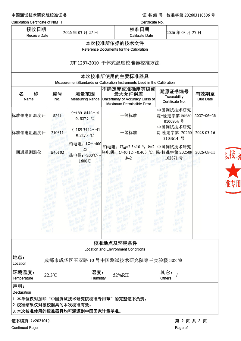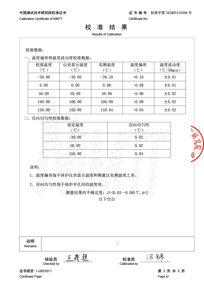 低溫干體爐-校準(zhǔn)證書 2026-4-7 本文被閱讀 587 次