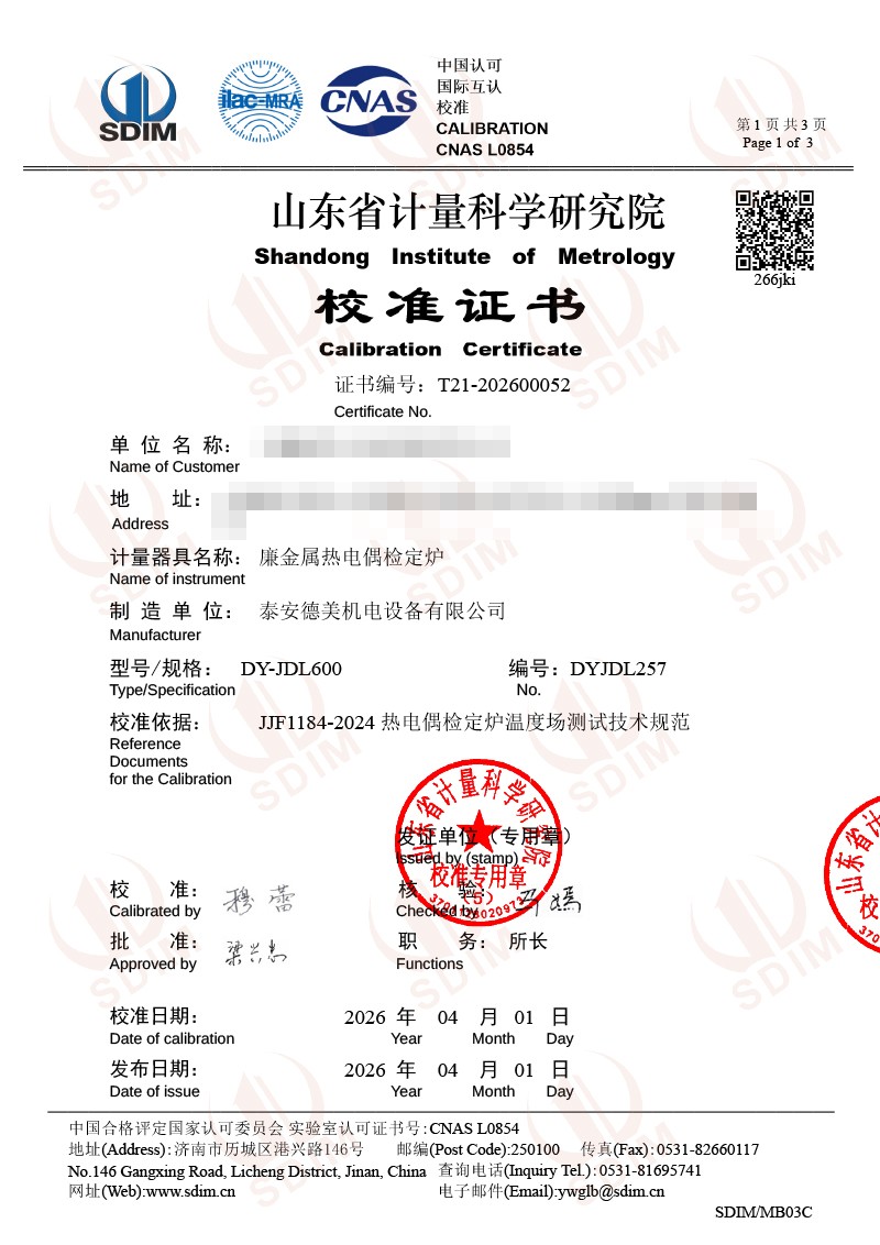 | 上一條:恒溫油槽-校準(zhǔn)證書(shū) | 下一條:高精度數(shù)字溫度計(jì)-校準(zhǔn)證書(shū) |