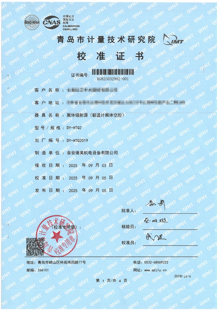 額溫計黑體空腔-校準證書(shū) 2025-9-23 本文被閱讀 1182 次