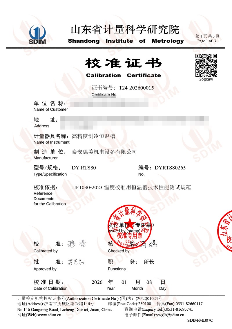 | 上一條:高精度制冷恒溫槽(-30~95℃)校準(zhǔn)證書(shū) | 下一條:廉金屬熱電偶檢定爐-校準(zhǔn)證書(shū) |