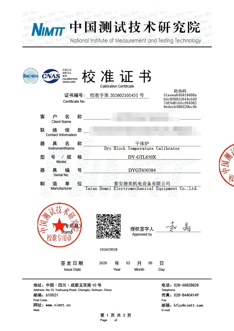 中溫干體-校準證書 2026-2-11 本文被閱讀 591 次