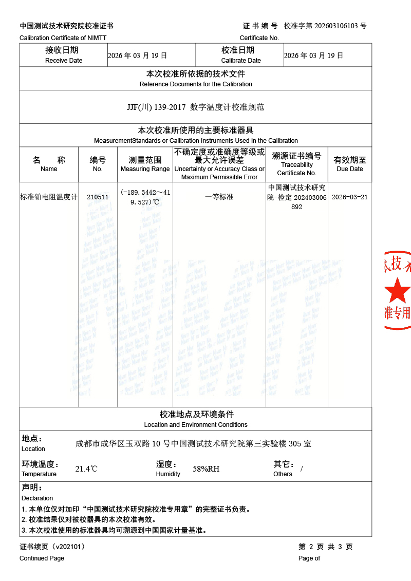 數(shù)字溫度計(jì)-校準(zhǔn)證書 2026-3-20 本文被閱讀 149 次