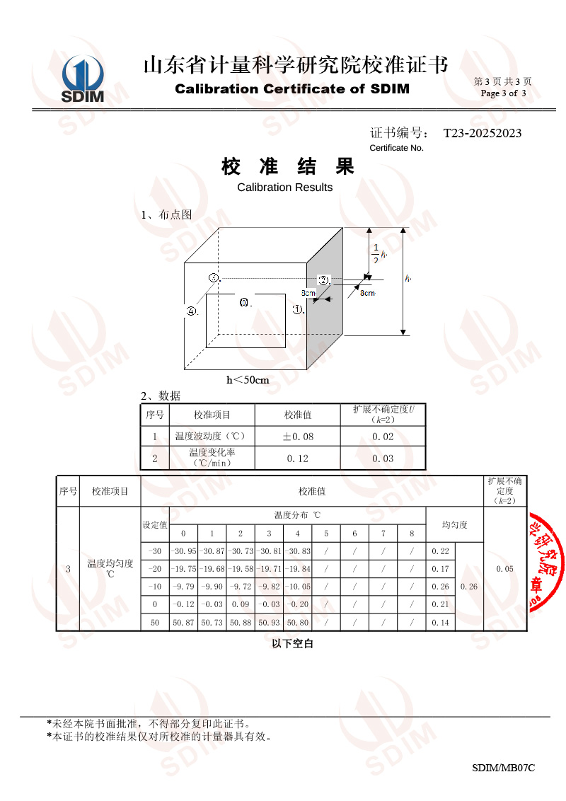 便攜溫度檢定箱(-30℃~50℃)校準證書(shū)