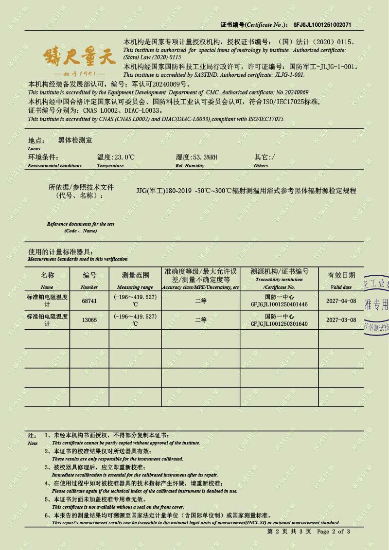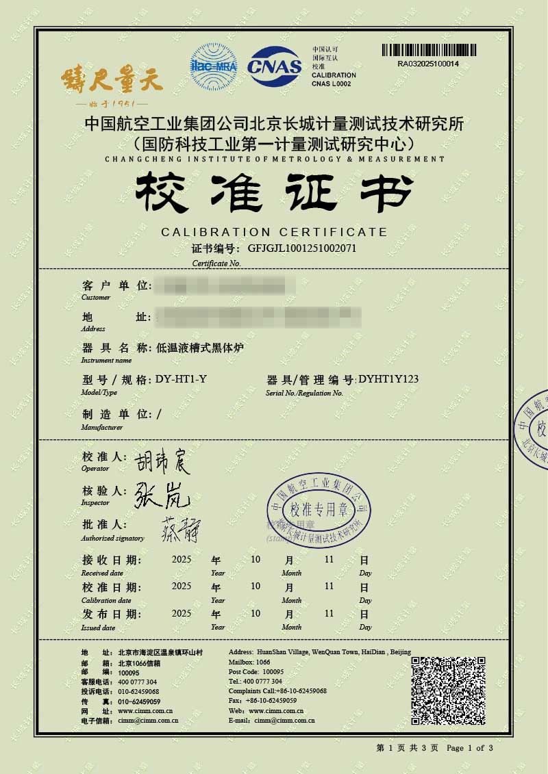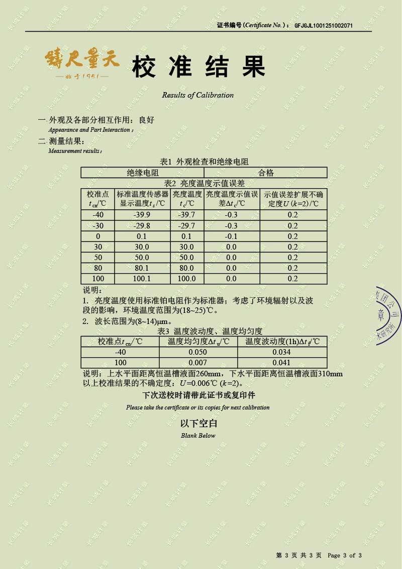 低溫液槽式黑體爐(-40-100℃)校準證書(shū) 2025-10-30 本文被閱讀 113 次