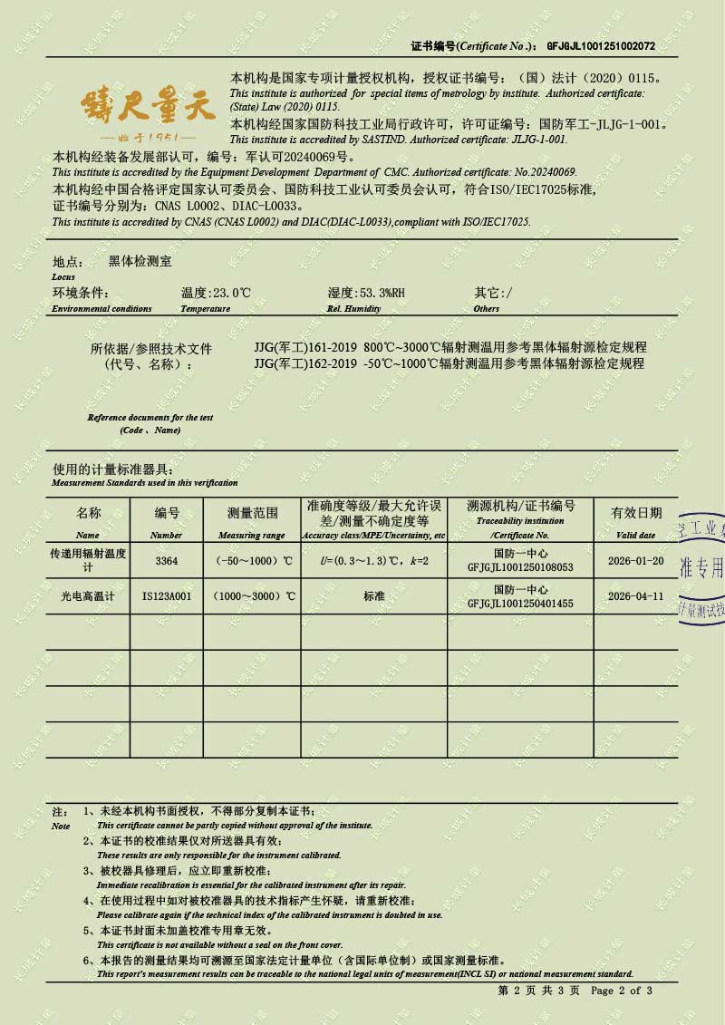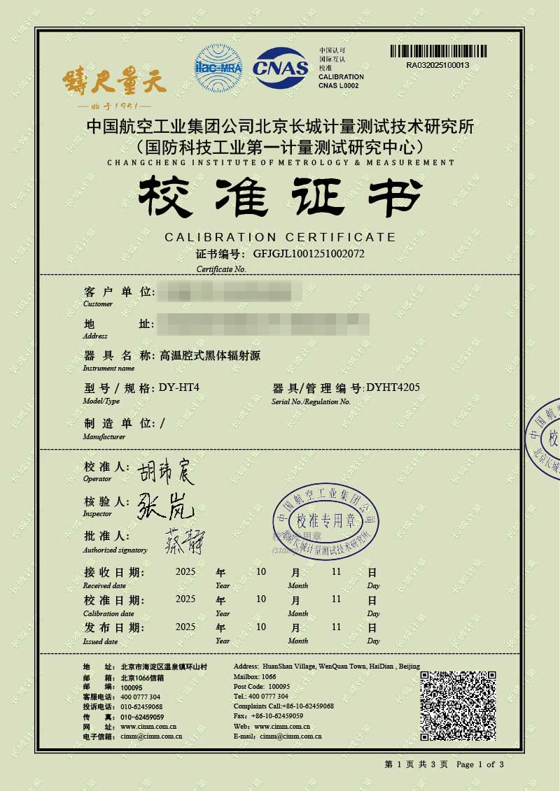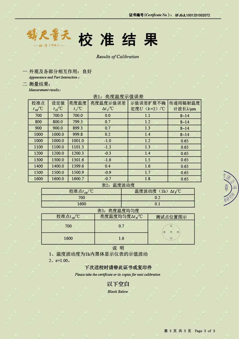 | 上一條:低溫液槽式黑體爐(-40-100℃)校準證書(shū) | 下一條:便攜式溫濕度檢定箱(-10-60℃)校準證書(shū) |
