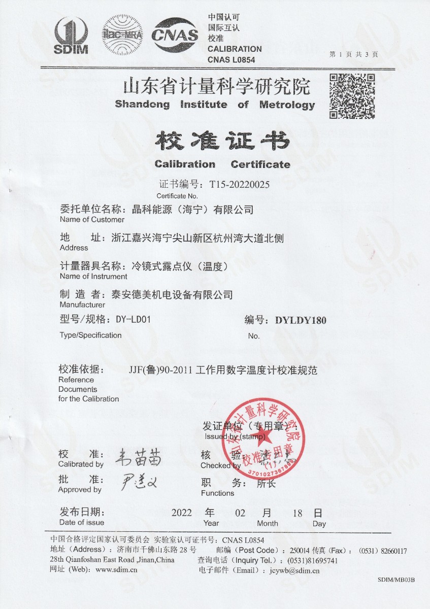 上一條:河北京車(chē)軌道交通車(chē)輛裝備有限公司-冷鏡式露點(diǎn)儀檢定證書(shū) | 下一條:超低溫面源黑體爐(-40-80℃)校準證書(shū) |