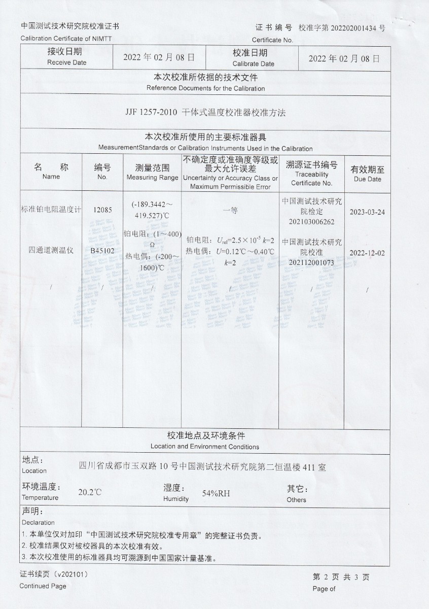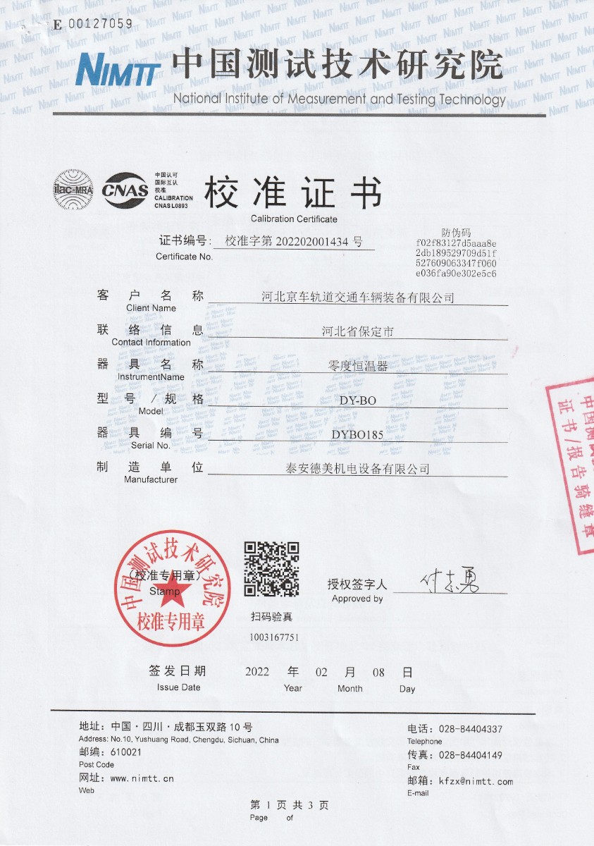 上一條:河北京車(chē)軌道交通車(chē)輛裝備有限公司S分度補償導線(xiàn) | 下一條:超低溫面源黑體爐(-40-80℃)校準證書(shū) |