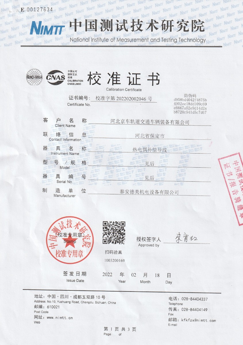 上一條:河北京車(chē)軌道交通車(chē)輛裝備有限公司-零點(diǎn)恒溫器 | 下一條:便攜式干體爐(-30-150℃)校準證書(shū) |