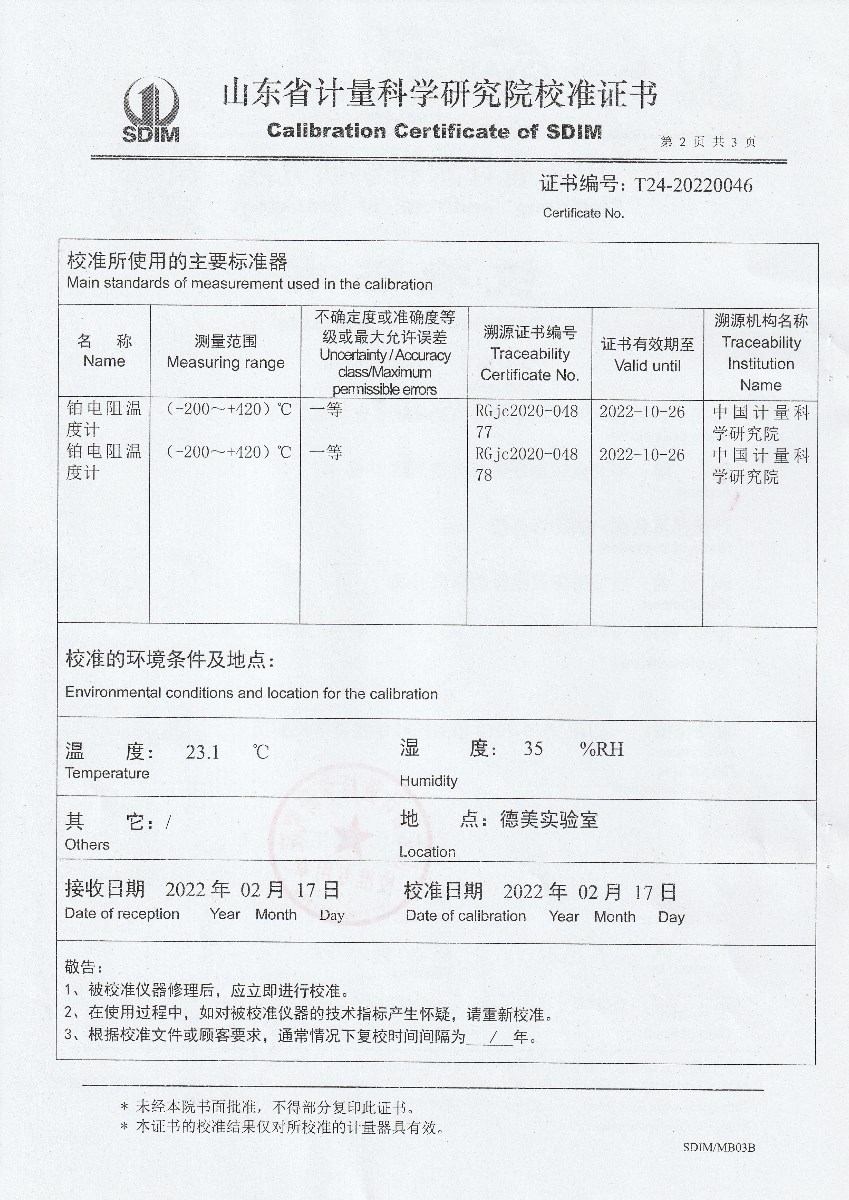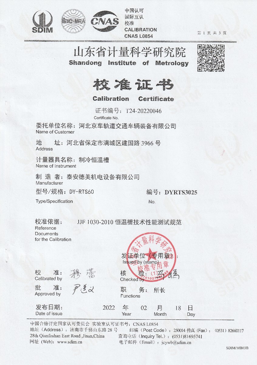 上一條:河北京車(chē)軌道交通車(chē)輛裝備有限公司-熱電偶檢定爐 | 下一條:便攜式干體爐(-30-150℃)校準證書(shū) |