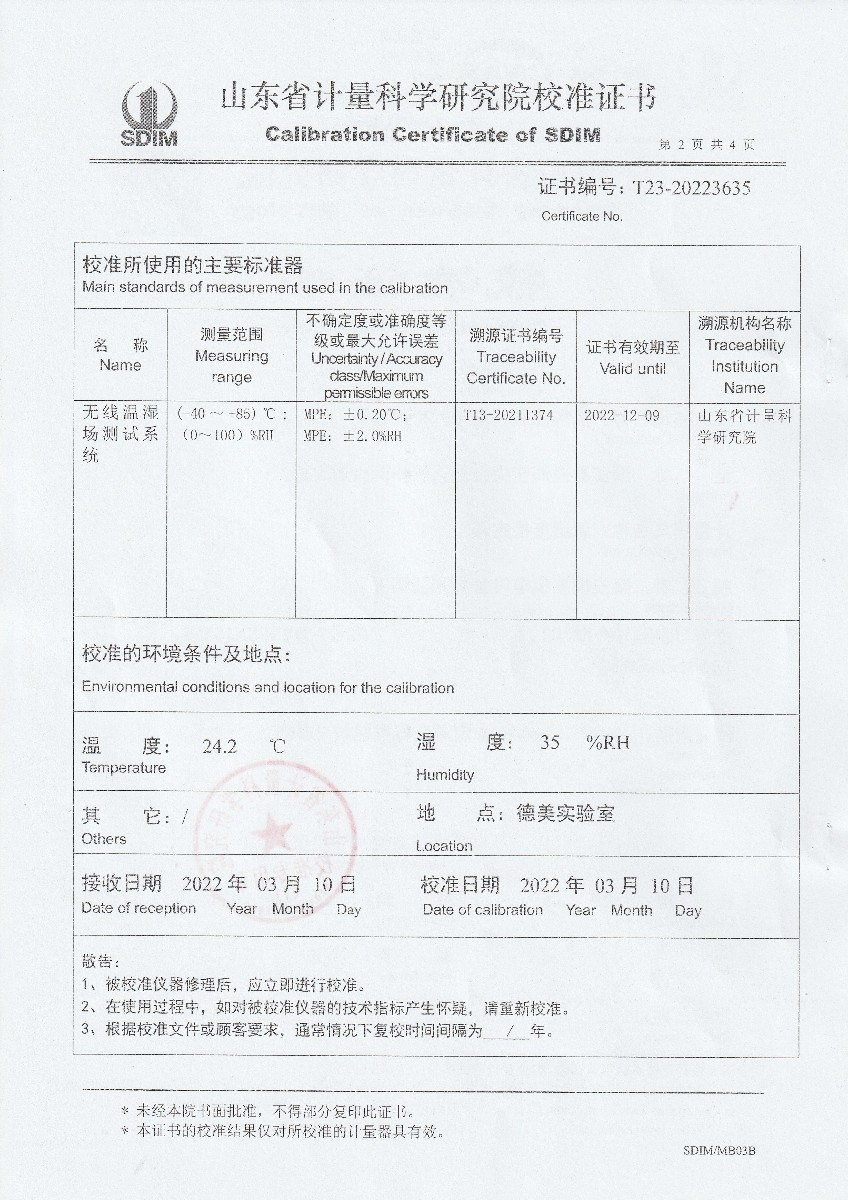上一條:河北京車(chē)軌道交通車(chē)輛裝備有限公司-溫濕度檢定箱 | 下一條:超低溫面源黑體爐(-40-80℃)校準證書(shū) |