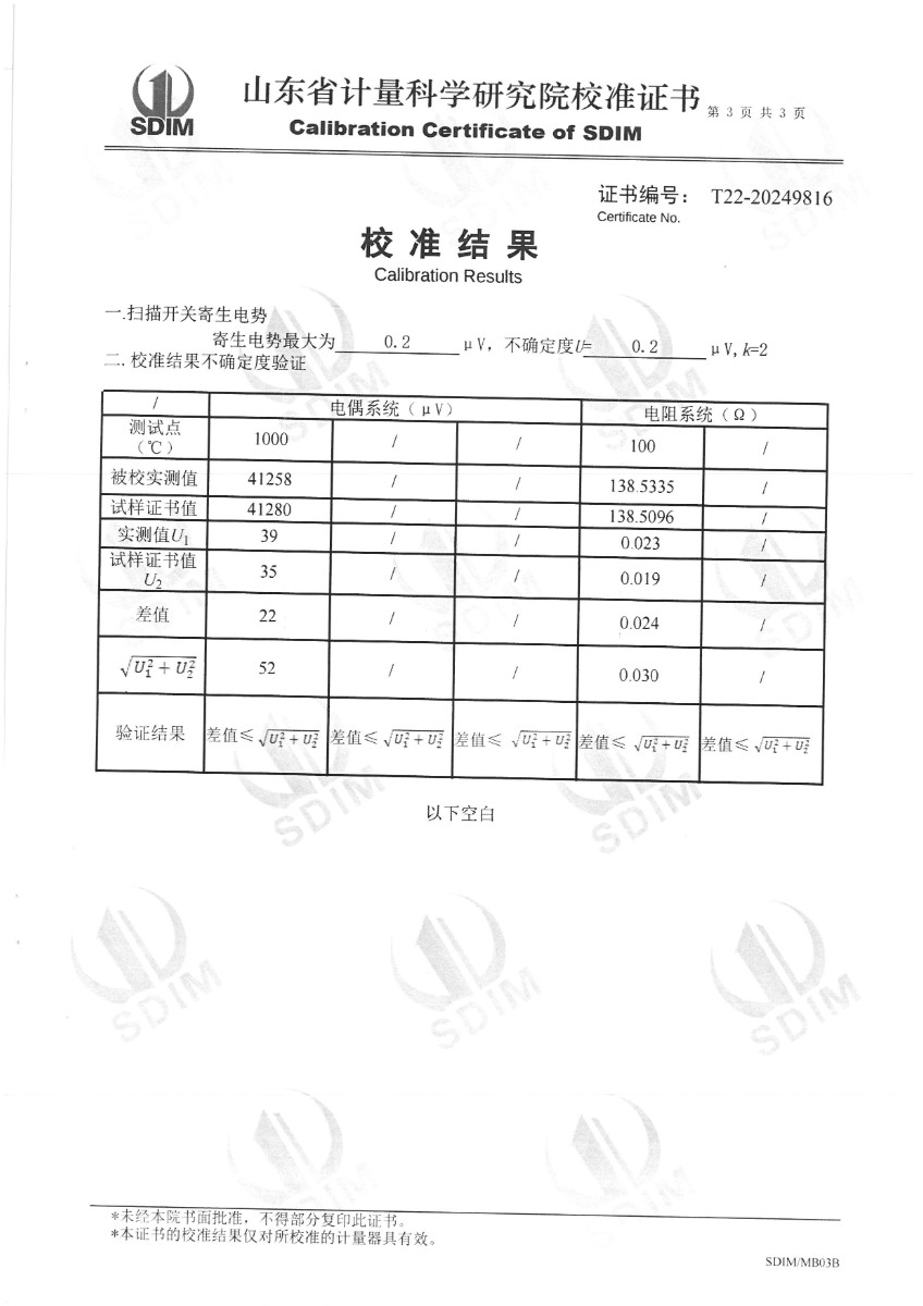 | 上一條:廉金屬熱電偶檢定爐(300~1200℃)校準證書(shū) | 下一條:露點(diǎn)儀檢定證書(shū) |