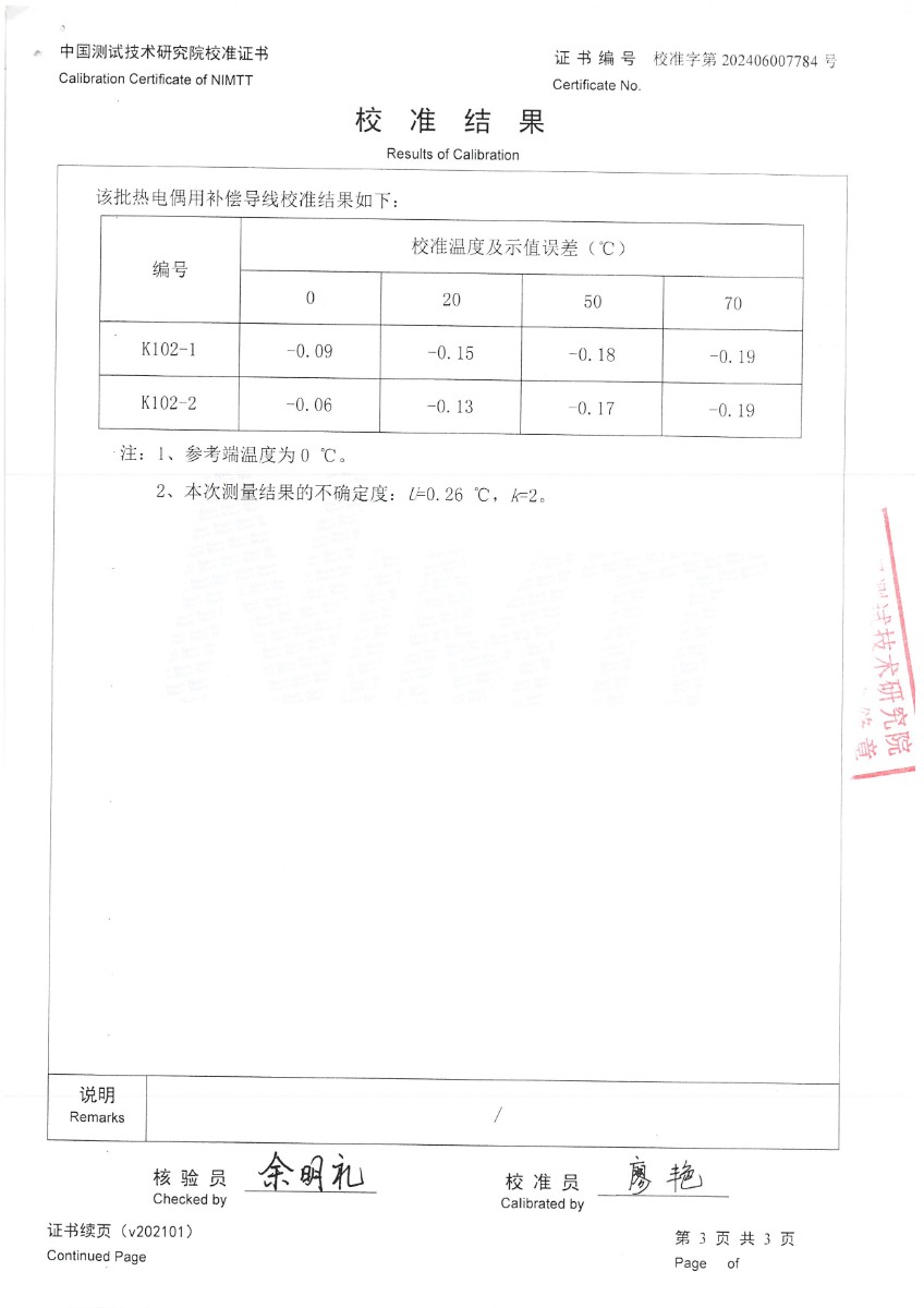 補償導線(xiàn)K分度校準證書(shū) 2024-6-29 本文被閱讀 5955 次