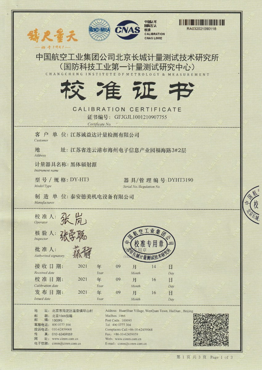江蘇誠益達計量檢測有限公司-黑體輻射源 2021-9-29 本文被閱讀 15219 次