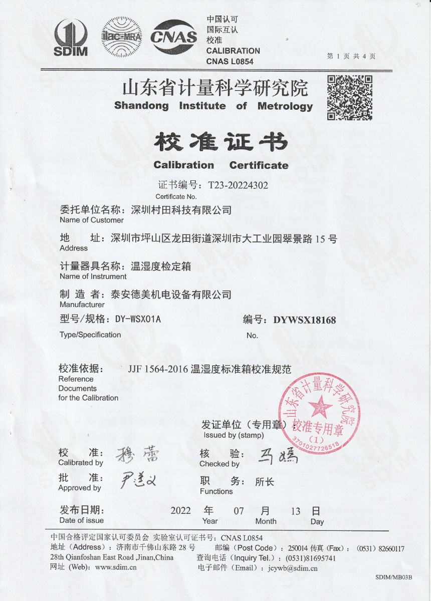 深圳村田科技有限公司-溫濕度檢定箱 2022-8-8 本文被閱讀 12594 次