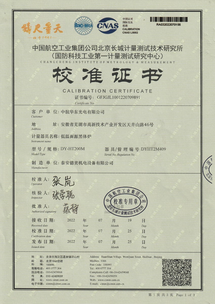 中航華東光電有限公司低溫面源黑體爐校準證書(shū) (3).jpg