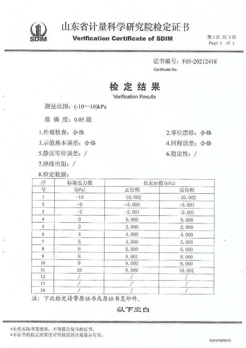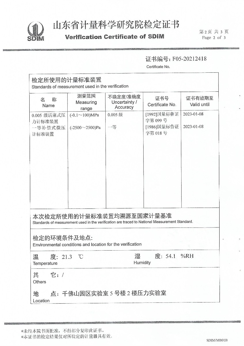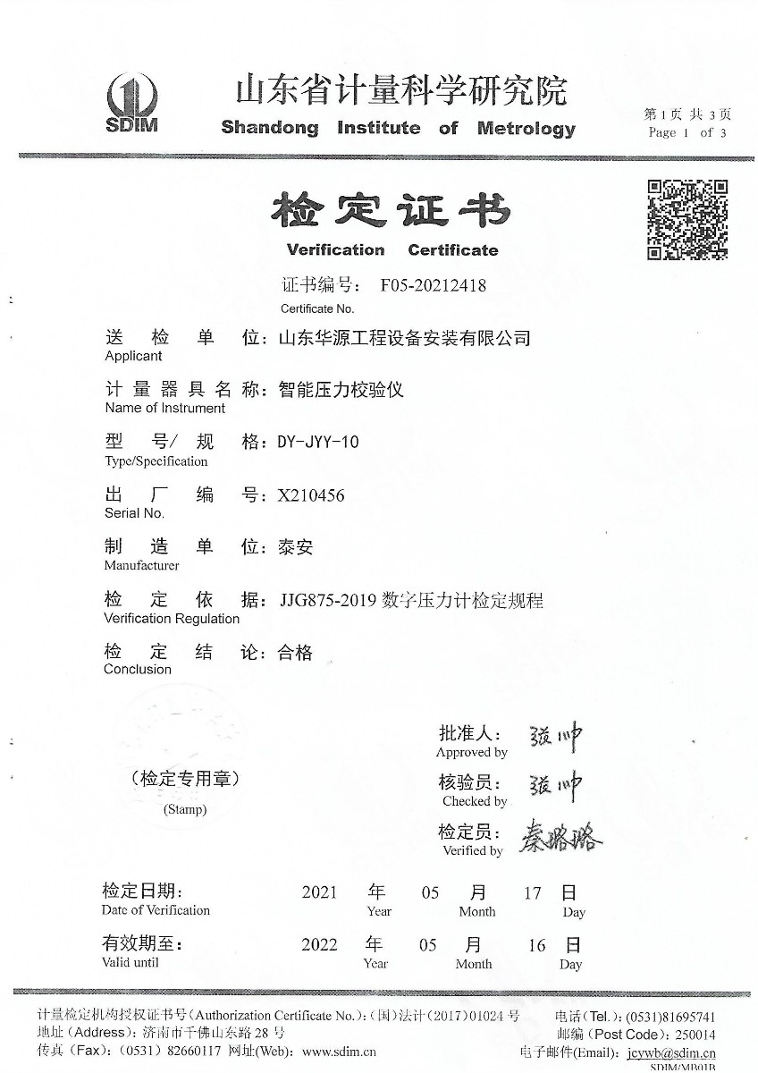 | 上一條:山東華源工程設備安裝有限公司-智能壓力校驗儀X210455 | 下一條:便攜式干體爐(-30-150℃)校準證書(shū) |