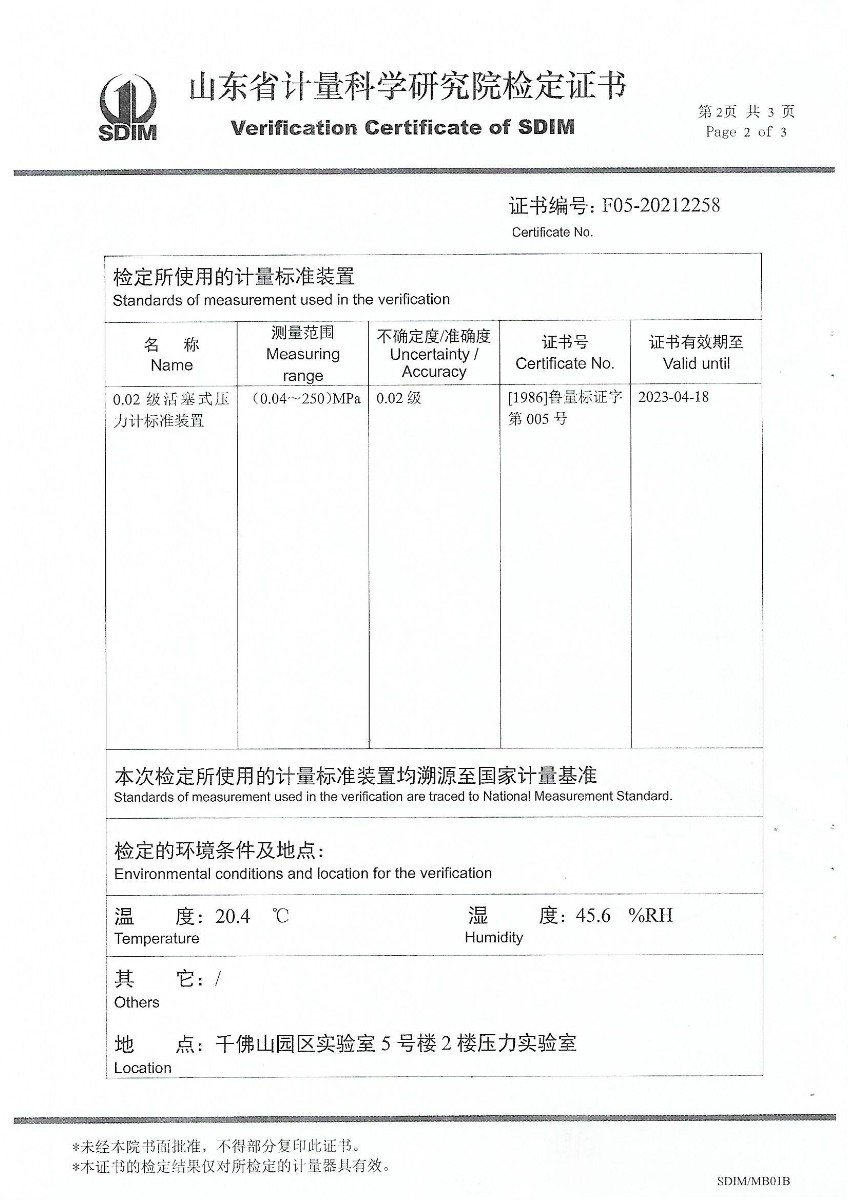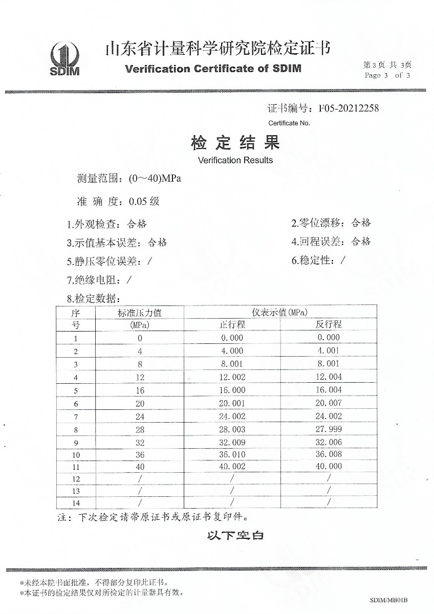 | 上一條:山東華源工程設備安裝有限公司-智能壓力校驗儀X210459 | 下一條:便攜式干體爐(-30-150℃)校準證書(shū) |