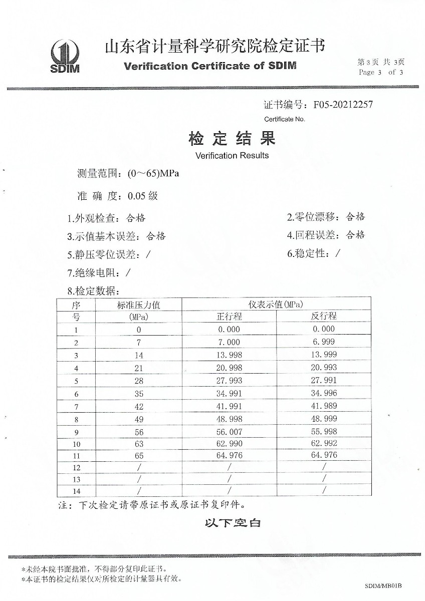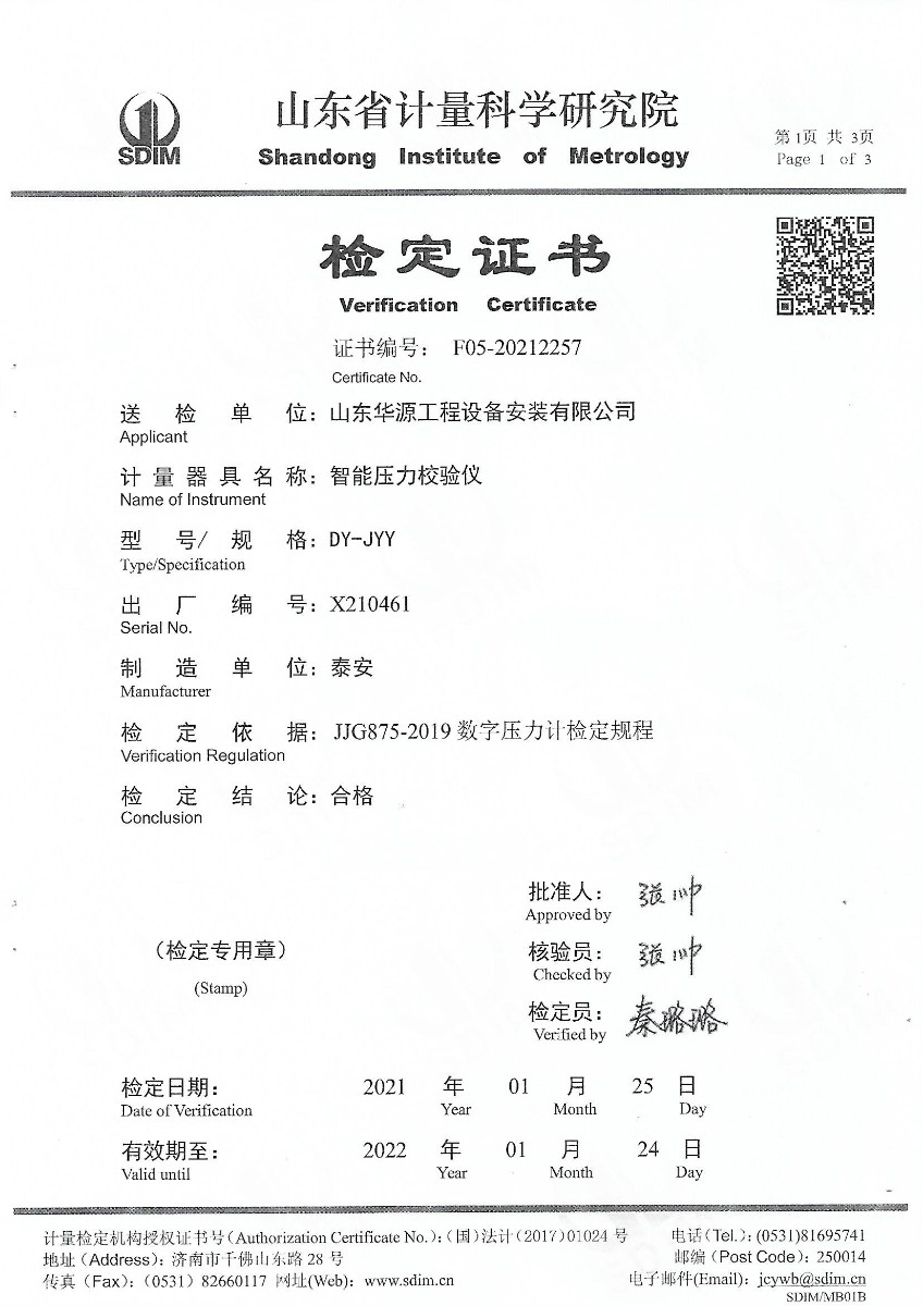 | 上一條:山東華源工程設備安裝有限公司-智能壓力校驗儀X210460 | 下一條:便攜式干體爐(-30-150℃)校準證書(shū) |