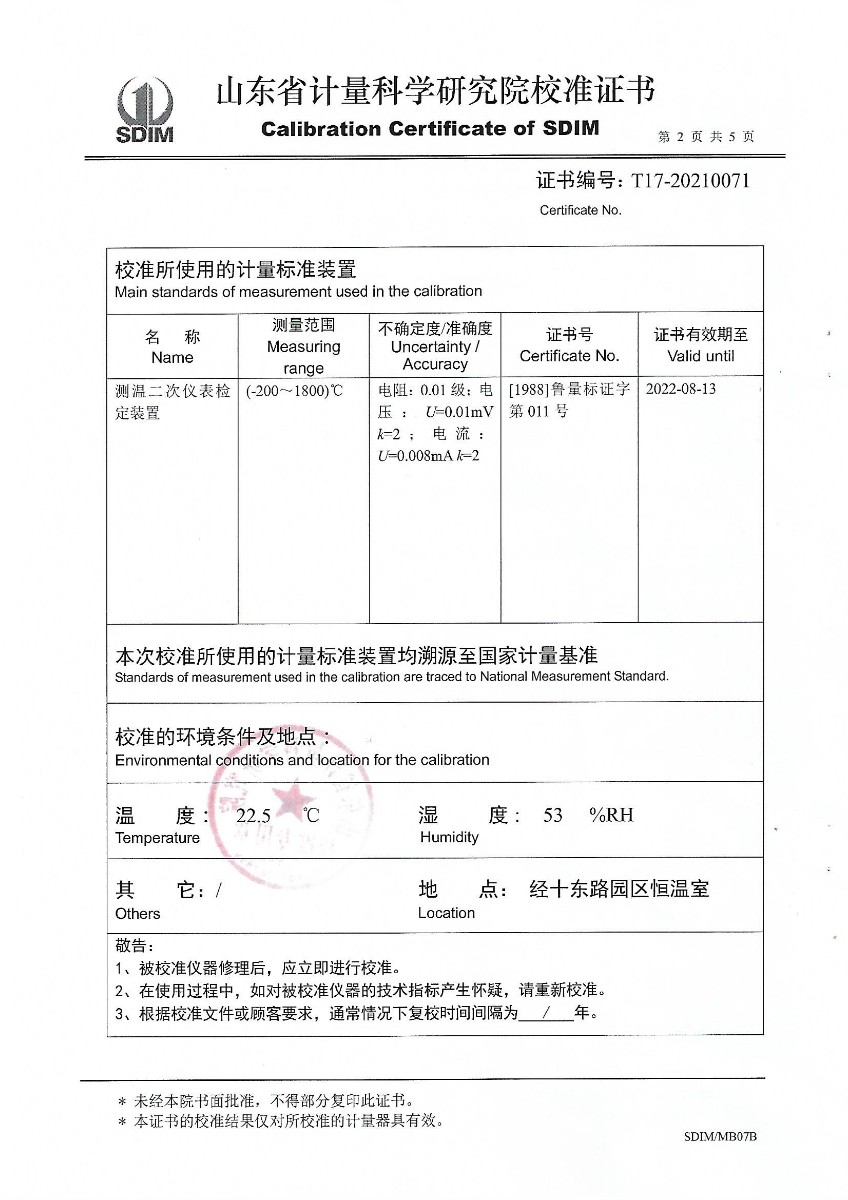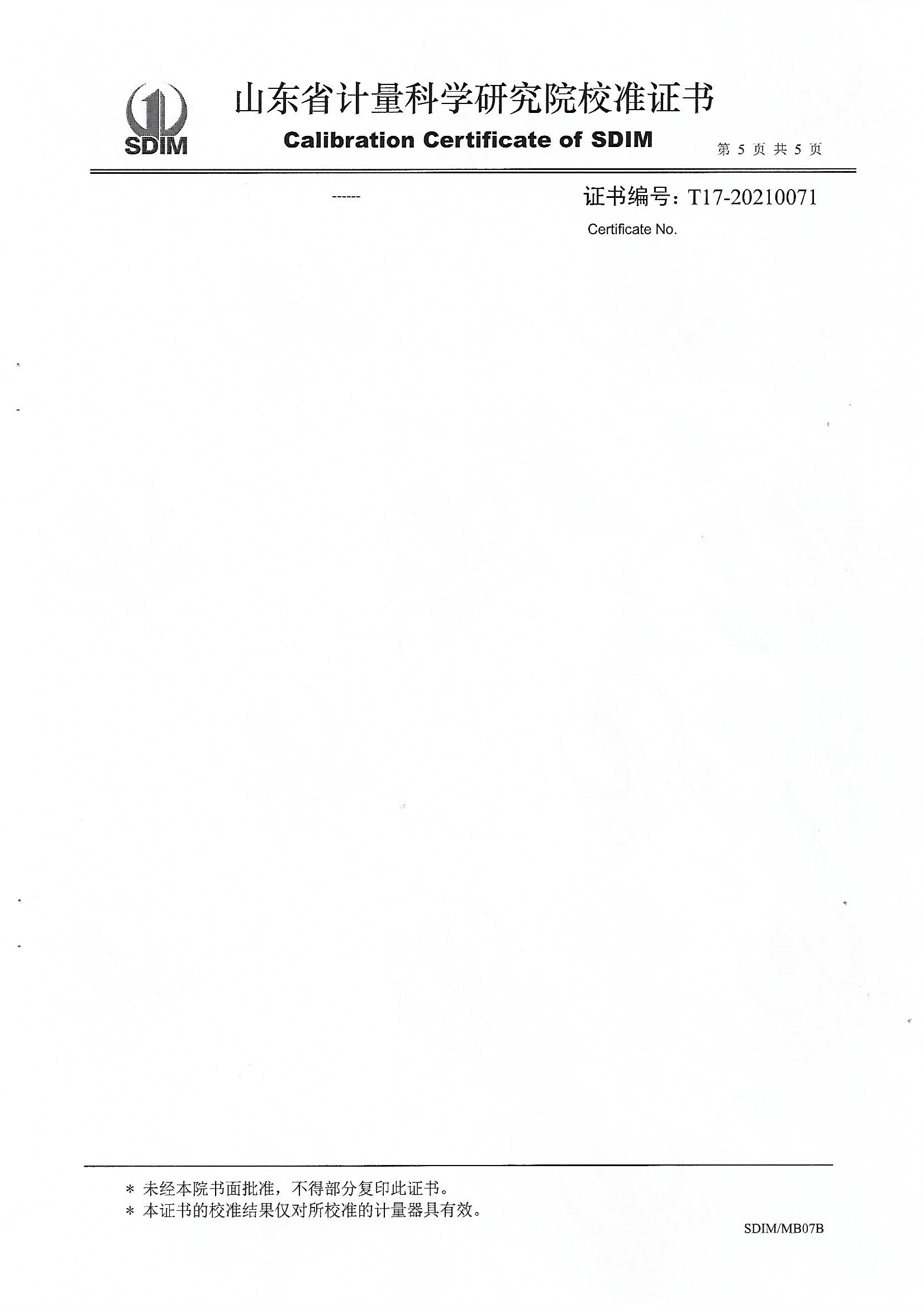 | 上一條:山東華源工程設備安裝有限公司-智能壓力校驗儀X210461 | 下一條:便攜式干體爐(-30-150℃)校準證書(shū) |
