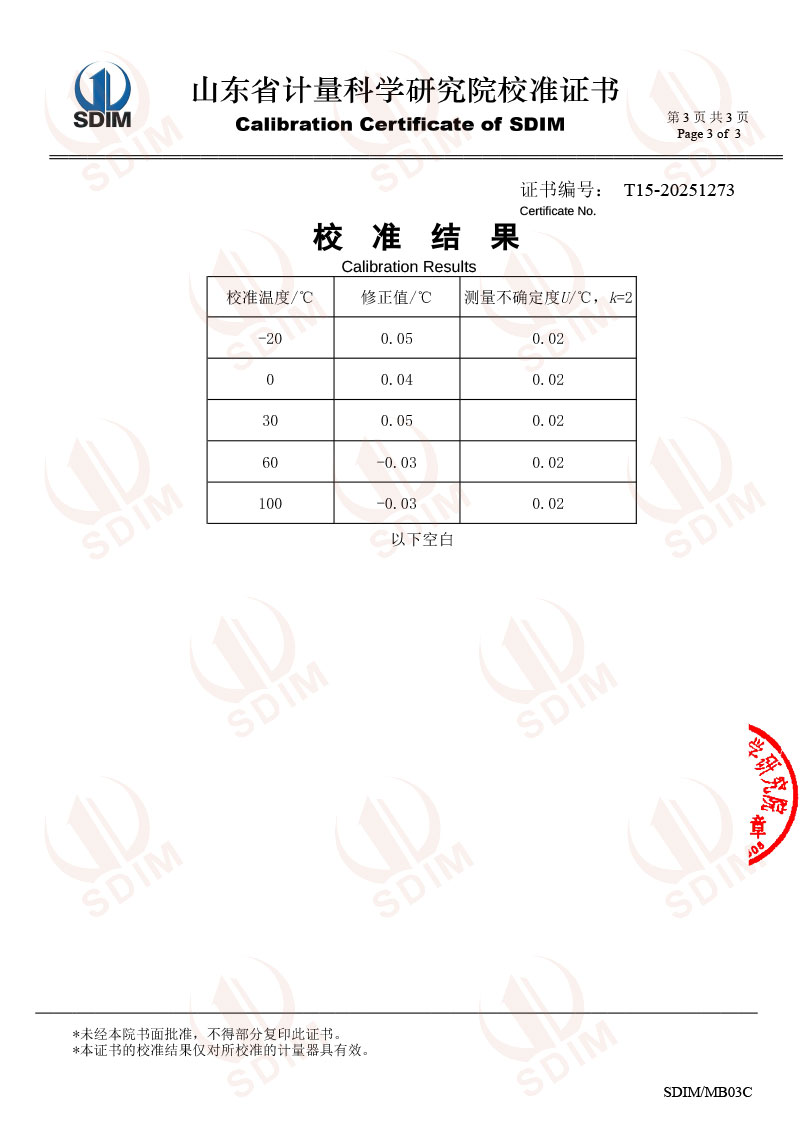 高精度數字溫度計(-80-300℃)校準證書(shū)