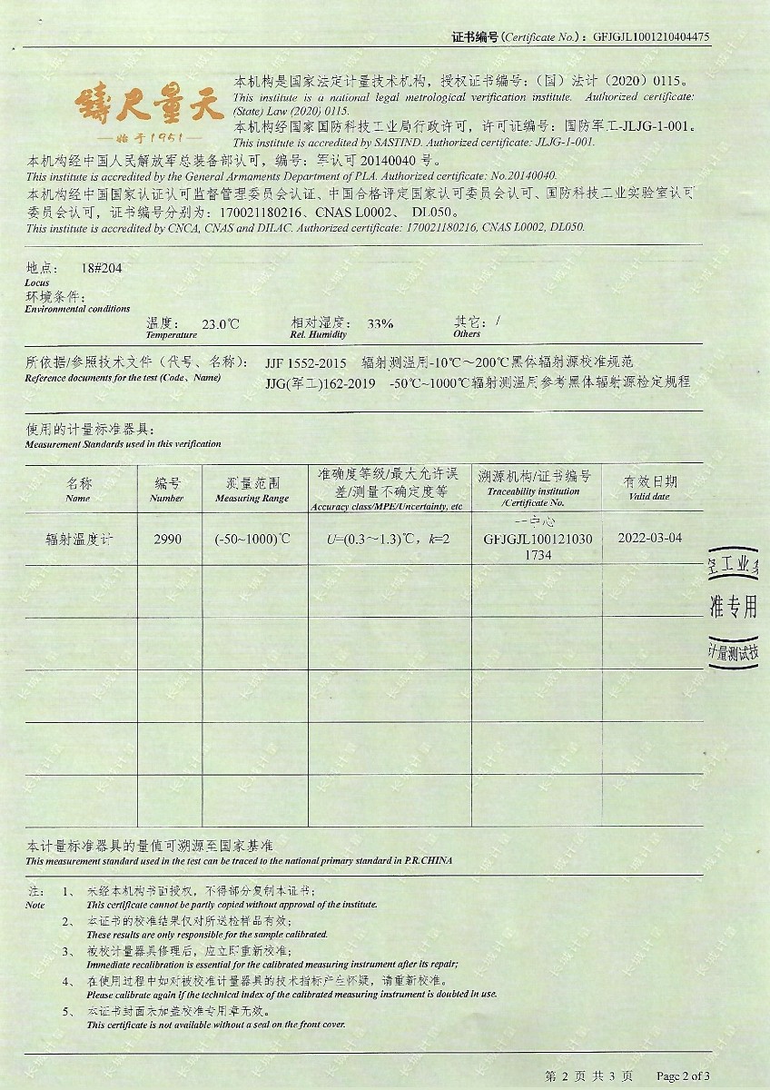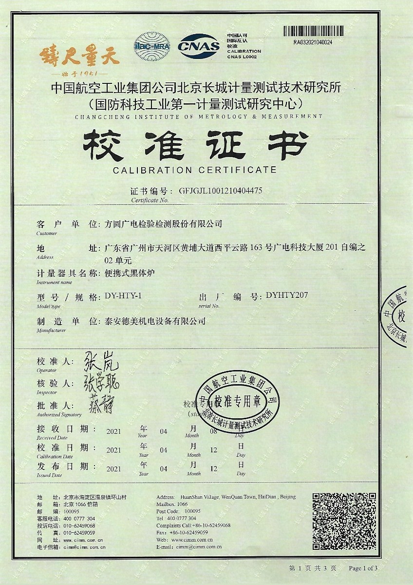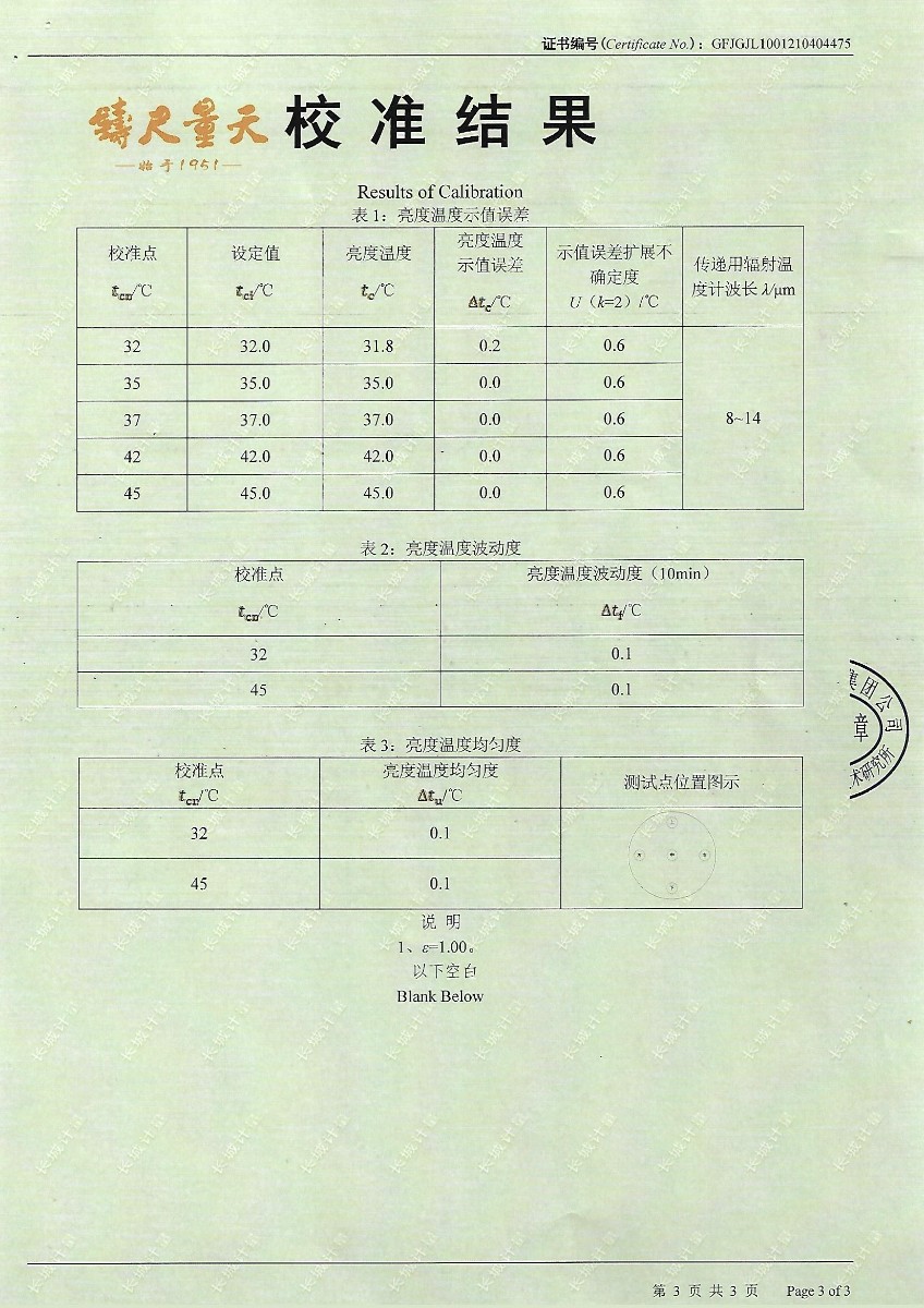 | 上一條:上海紅力檢測技術(shù)有限公司-耳溫計黑體空腔 | 下一條:超低溫面源黑體爐(-40-80℃)校準證書(shū) |