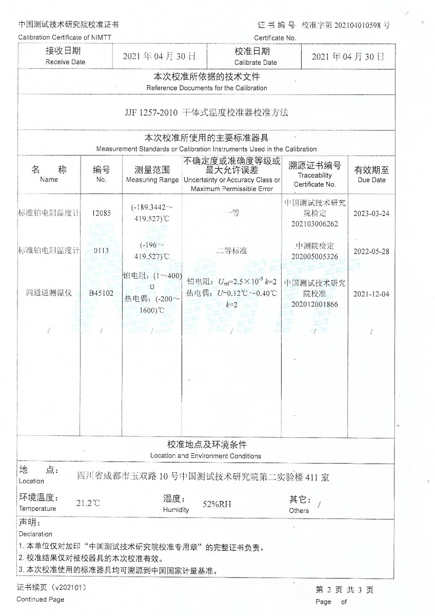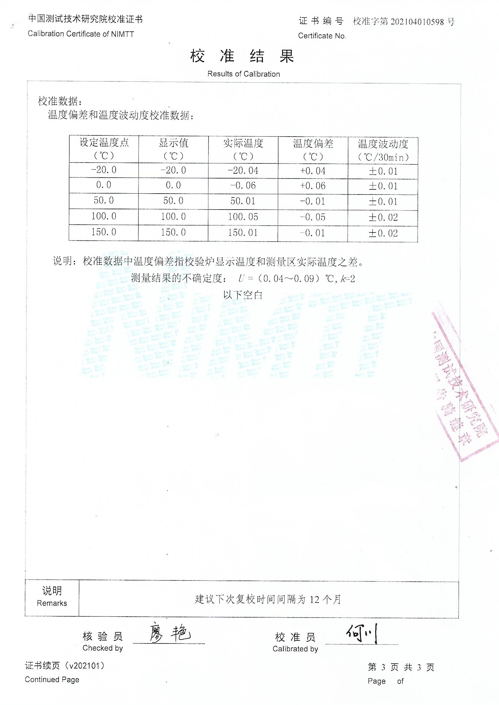 | 上一條:中集安瑞環(huán)科技股份有限公司-制冷恒溫槽 | 下一條:超低溫面源黑體爐(-40-80℃)校準證書(shū) |