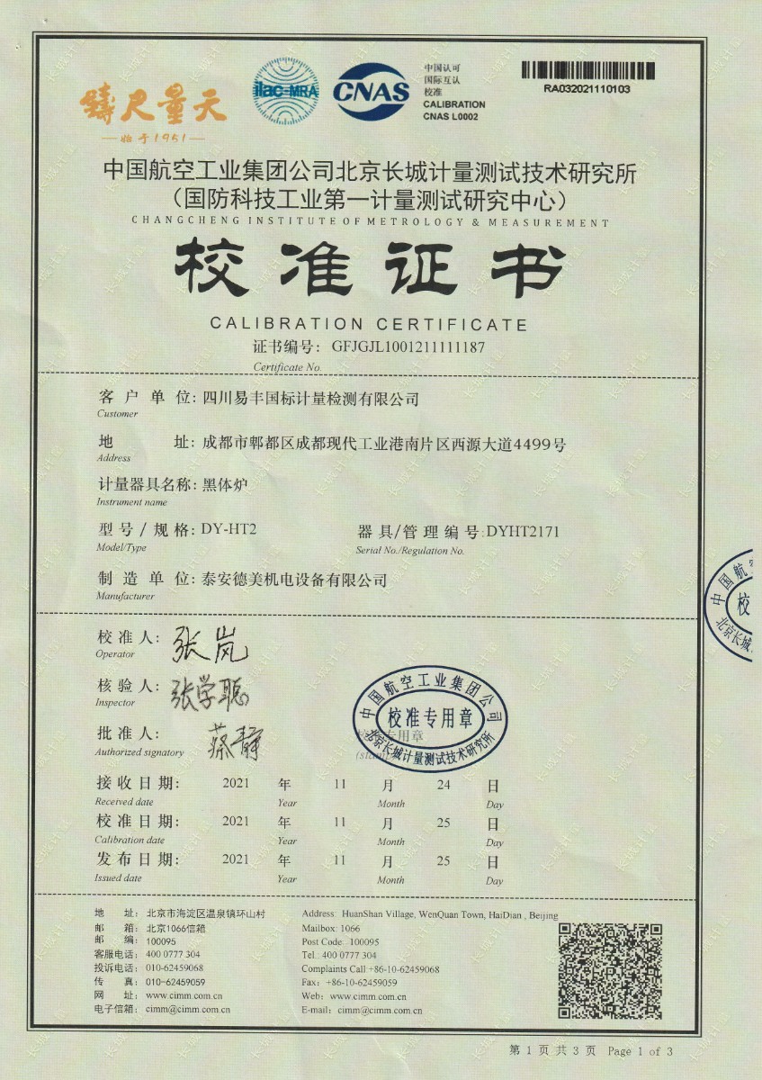 四川易豐國際計量檢測有限公司-黑體爐 2021-12-3 本文被閱讀 13896 次