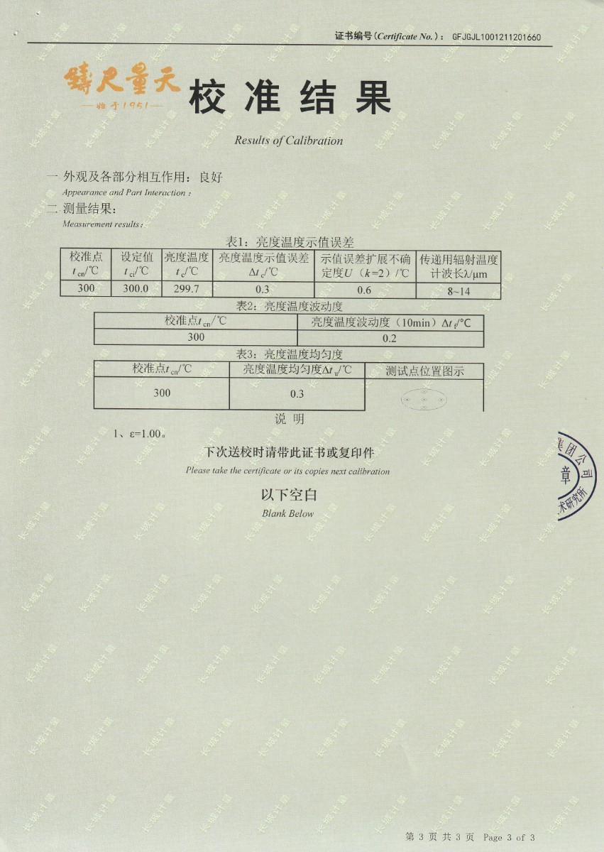 | 上一條:南京理工大學(xué)-黑體輻射源校準證書(shū)180-500℃ | 下一條:露點(diǎn)儀檢定證書(shū) |