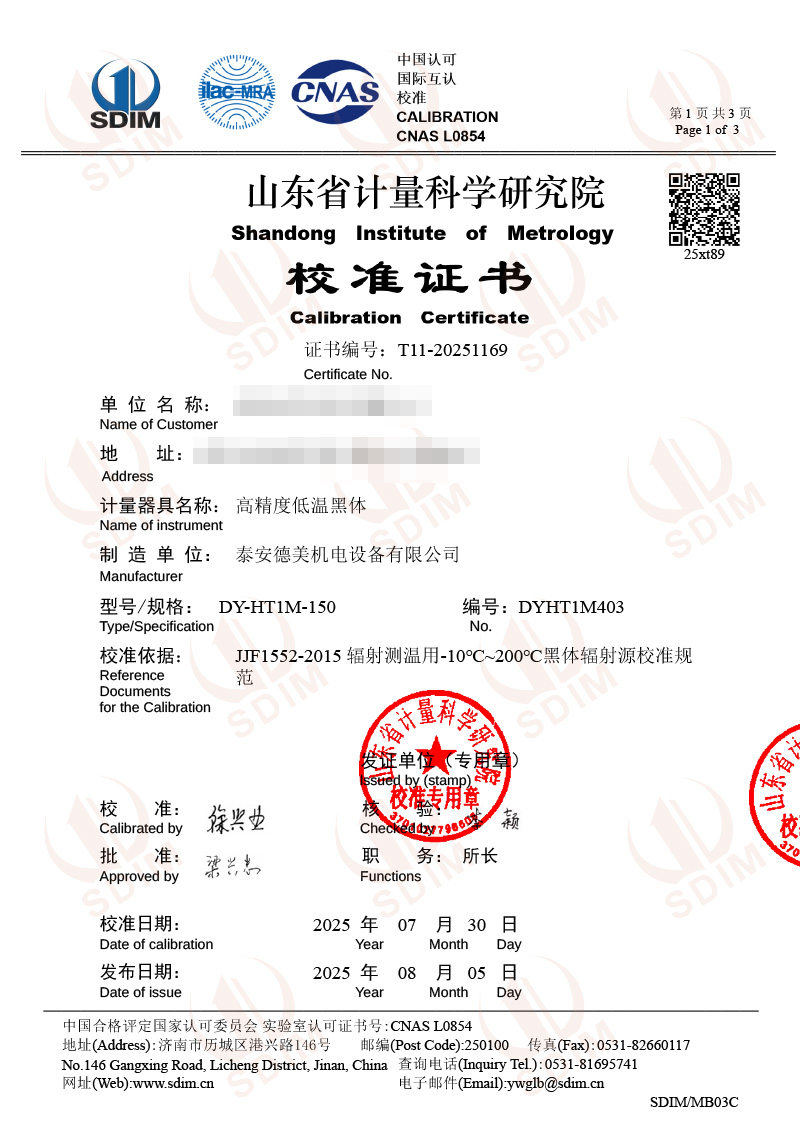 上一條:干體式溫度校準器(40~650℃)校準證書(shū) | 下一條:露點(diǎn)儀檢定證書(shū) |