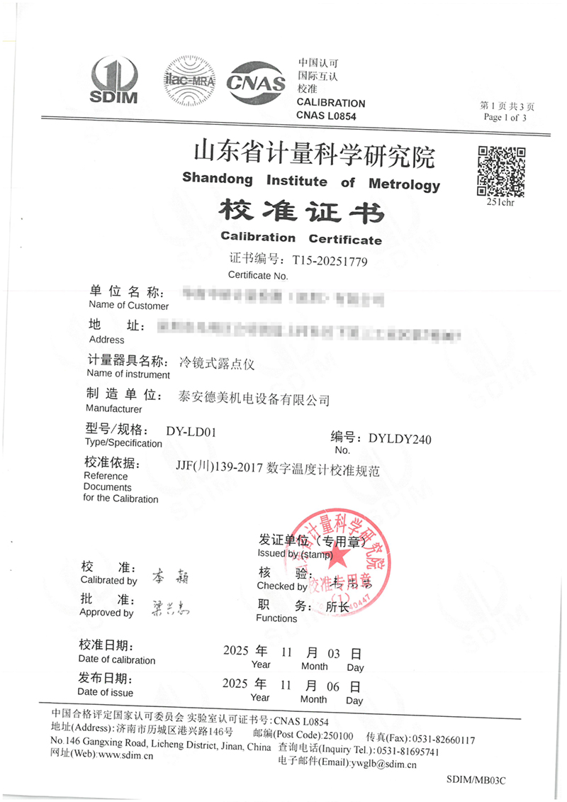 冷鏡式露點(diǎn)儀校準證書(shū) 2025-11-7 本文被閱讀 86 次